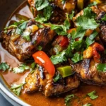 6. Add Chicken: Place the marinated chicken pieces in the skillet, cooking until browned on all sides, about 8-10 minutes.